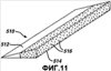 На Фиг.11 композиция вспомогательного средства для бритья 510 включает вытянутые в длину части 512 и 514. Часть 514 включает отшелушивающие элементы 516. Части 512 и 514 могут каждая включать основу вспомогательного средства для бритья.
