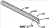 Фиг.4 показывает композицию 310 вспомогательного средства для бритья, имеющую геометрию, сходную с описанной в патенте США 5956848, полный объем которого включен в данную заявку посредством ссылки. Композиция 310 вспомогательного средства для бритья включает части 314 и 318 и соединительную часть 319. Части 314 и 318 включают нерастворимый в воде полимер и вспомогательное средство для бритья. Композиция 310 вспомогательного средства для бритья дополнительно включает центральную часть 316 с полимерной основой, в которую внедрены отшелушивающие элементы 320. Полимерная основа центральной части 316 включает нерастворимый в воде полимер и краситель и может необязательно дополнительно включать вспомогательное средство для бритья и/или другие добавки.