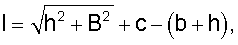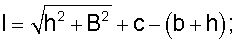 где l – длина гибкого элемента, h – высота борта, В – ширина кузова, b – длина нижнего звена, с – превышение над днищем кузова точек крепления гибких элементов к борту.