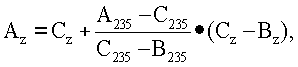 где Z – массовое число минорного изотопа урана; AZ – предельное содержание в высокообогащенном уране минорного изотопа урана, мас.%; BZ – содержание минорного изотопа в разбавителе, мас.%; СZ – требуемое содержание минорного изотопа в гексафториде низкообогащенного урана, мас.%; А235, В235, С235 – содержание изотопа U-235 в высокообогащенном уране, разбавителе и низкообогащенном уране соответственно, мас.%.