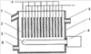 В реакционную камеру 1 через патрубок для ввода очищаемой воды 5 подают сток (очищаемую воду). На трубчатый волновод-излучатель 3 от магнитно-стрикционного преобразователя 4 передают ультразвуковые колебания в частотном диапазоне 20-25 кГц при плотности мощности 1-3 Вт/см2. Предварительную ультразвуковую обработку стока (очищаемой воды) проводят в режиме развитой кавитации при резонансной частоте излучателя 20-25 кГц и плотности мощности ультразвуковых колебаний 1,5-3 Вт/см2 в течение 3-5 минут. Данная операция способа за счет разрушения макромолекул и агломератов, образования свободных радикалов, дегазационного эффекта и эрозионной активности способствует активации электродов, повышению электропроводности стока, увеличению эффективности очистки и уменьшению энергозатрат. Пакет электродов 2 подключают к источнику постоянного тока (на рисунке не показан), обеспечивающему значения анодной плотности тока на уровне 0,5-3 А/дм2.