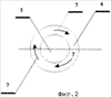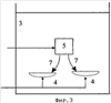 На фиг.1-7 использованы следующие условные обозначения составных элементов: 1 – компрессор; 2 – озонатор; 3 – водный бассейн; 4 – диспергатор; 5 – форсунка; 6 – насос; 7 – струи форсунки; 8 – ось струи форсунки; 9 – сквозная пора диспергатора, 10 – ось сквозной поры диспергатора.