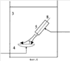 При использовании диспергатора малого диаметра (соразмерного с форсункой) целесообразно направить ось 8 вихревой струи 7 под косым углом к поверхности диспергатора 4. Это позволяет вывести форсунку 5 за пределы пространства над диспергатором 4 и расширяет диапазон интенсивности воздействия вихревых струй 7, в частности, позволяет снижать потери при барботаже в экономичном режиме – с небольшим центробежным влиянием вихревых струй 7. Размещение форсунки 5 над диспергатором 4 в данном режиме мешало бы всплыванию части пузырей.