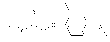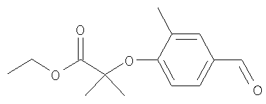 К раствору 4-гидрокси-3-метилбензальдегида (3 г; 22 ммоль) и этил-2-бром-2-метилпропионата (6,5 мл; 44 ммоль) в DMF (100 мл) добавляли карбонат цезия (15,8 г; 48 ммоль). Полученную смесь нагревали при 40°С в течение 42 ч, затем оставляли охлаждаться до комнатной температуры. Реакционную смесь разбавляли водой (200 мл) и экстрагировали EtOAc (2×150 мл). Органический раствор сушили (MgSO4), фильтровали и упаривали. В результате очистки Biotage 1H ЯМР (400 МГц; CDCl3) Промежуточное соединение 6: этил-(4-формил-2-метилфенокси)-ацетат