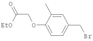 К раствору этил-[4-(гидроксиметил)-2-метилфенокси]ацетата (4,27 г; 19 ммоль) в безводном СН2Cl2 (150 мл) в атмосфере азота при 5°С добавляли тетрабромметан (6,91 г; 20,9 ммоль), затем трифенилфосфин (5,71 г; 21,8 ммоль) порциями в течение 0,5 ч. Полученную смесь затем перемешивали в течение 16 ч при комнатной температуре. Растворители удаляли под вакуумом. В результате очистки Biotage 1H ЯМР (400 МГц; CDCl3) Промежуточное соединение 16: 4