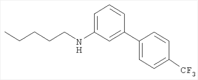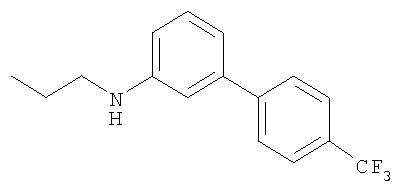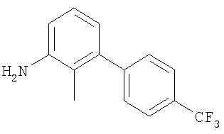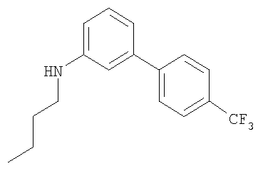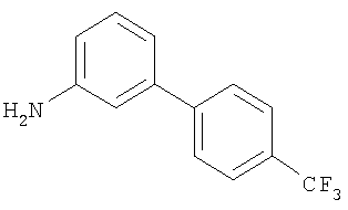 К раствору 3-иоданилина в DME (40 мл) и воде (20 мл) добавляли пара-трифторметилфенилбороновую кислоту (2,6 г; 13,7 ммоль) и карбонат натрия (2,5 г; 23,6 ммоль). Аппарат заполняли азотом перед добавлением тетракис(трифенилфосфин)палладия(0) (0,312 г; 0,27 ммоль). Реакционную смесь перемешивали при 95°С в течение 17 ч в атмосфере азота, затем оставляли охлаждаться до комнатной температуры и растворители удаляли под вакуумом. Остаток распределяли между EtOAc (2 х 75 мл) и водой (75 мл). Органический раствор сушили (MgSO4) и растворитель удаляли под вакуумом. В результате очистки Biotage 1H ЯМР (400 МГц; CDCl3) Промежуточное соединение 17: N-бутил-N-[4
