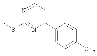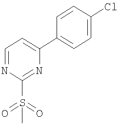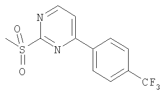 К суспензии 2-(метилтио)-4-[4-(трифторметил)фенил]пиримидина (2,24 г; 8,4 ммоль) в метаноле (85 мл) и воде (85 мл) при 0°С добавляли оксон LC/MS: m/z 302,8 [М+Н]+, Rt 3,1 мин. Промежуточное соединение 43: 4-(4-хлорфенил)-2-(метилсульфонил)пиримидин