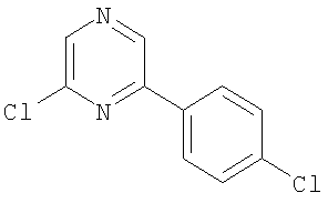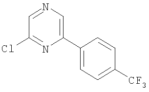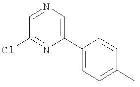 К смеси 2,6-дихлорпиразина (0,5 г; 3,36 ммоль), карбоната натрия (0,925 г; 8,73 ммоль) и 4-трифторметилфенилбороновой кислоты (0,638 г; 3,36 ммоль) в диметоксиэтане (15 мл) и воде (7,5 мл) в атмосфере азота добавляли тетракис(трифенилфосфин)палладий(0) (0,078 г). Полученную смесь нагревали с обратным холодильником в течение 5 ч в атмосфере азота, затем перемешивали при комнатной температуре в течение ночи. Реакционную смесь разбавляли водой (50 мл) и экстрагировали хлороформом (2×75 мл). Органический раствор сушили (MgSO4) и растворители удаляли под вакуумом. В результате очистки Biotage 1Н ЯМР (400 МГц; CDCl3) Промежуточное соединение 50: 2-хлор-6-(4-метилфенил)пиразин