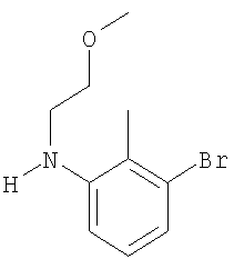 Получали из масляного альдегида и 3-бром-2-метилфениламина, используя методику, описанную для Промежуточного соединения 56. LC/MS: m/z 244 [M+H]+, Rt 3,82 мин. Промежуточное соединение 58: 3-бром-N-(2-метоксиэтил)-2-метиланилин