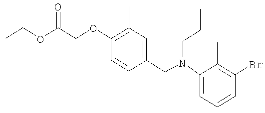 Раствор 1,1,2-триметоксиэтана (2,07 мл; 16,07 ммоль) в 0,5 М HCl (32 мл) нагревали при 100°С в течение 2 ч. Охлажденную смесь экстрагировали CH2Cl2 (30 мл) и органический раствор сушили (3Å молекулярные сита). Добавляли 3-бром-2-метилфениламин и полученный раствор перемешивали в атмосфере азота в течение 20 мин. Добавляли уксусную кислоту (461 мкл; 8,05 ммоль) и триацетоксиборогидрид натрия (4,78 г; 22,56 ммоль) и реакционную смесь перемешивали в атмосфере азота при комнатной температуре в течение 16 ч. Порциями добавляли насыщенный бикарбонат натрия (60 мл), полученную смесь перемешивали в течение 0,5 ч и экстрагировали CH2Cl2 (2×100 мл). Органический раствор сушили (Na2SO4) и растворители удаляли под вакуумом. В результате очистки посредством SPE (диоксид кремния, 2×20 г), элюируя смесью циклогексан:EtOAc (от 100:2 до 100:5), получали указанное в заголовке соединение в виде желтого масла (687 мг). LC/MS: m/z 246 [М+Н]+, Rt 3,27 мин. Промежуточное соединение 59: этил-(4-{[(3-бром-2-метилфенил)-(бутил)амино]метил}-2-метилфенокси)ацетат К раствору 3-бром-N-бутил-2-метиланилина (700 мг; 2,89 ммоль) в безводном ацетонитриле (75 мл) добавляли этил-[4-(бромметил)-2-метилфенокси]ацетат (830 мг; 2,89 ммоль) и N,N-диизопропилэтиламин (331 мкл; 1,9 ммоль). Полученную смесь нагревали при 80°С в течение 3 ч. Реакционную смесь охлаждали, растворители удаляли под вакуумом, разбавляли водой (50 мл) и экстрагировали CH2Cl2 (2×100 мл). Органический раствор сушили (Na2SO4) и растворители удаляли под вакуумом. В результате очистки посредством SPE (диоксид кремния, 20 г), элюируя смесью циклогексан:EtOAc (от 100:2 до 100:5), получали указанное в заголовке соединение в виде бесцветного масла (749 мг). LC/MS: m/z 450 [M+H]+, Rt 4,32 мин. Промежуточное соединение 60: этил-(4-{[(3-бром-2-метилфенил)(пропил)амино]метил}-2-метилфенокси)ацетат Получали из 3-бром-2-метил-N-пропиланилина, используя методику, описанную для Промежуточного соединения 59. LC/MS: m/z 436 [М+Н]+, Rt 4,24 мин. Промежуточное соединение 61: этил-(4-{[{3-бром-2-метилфенил)(2-метоксиэтил)амино]метил}-2-метилфенокси)ацетат Получали из 3-бром-N-(2-метоксиэтил)-2-метиланилина, используя методику, описанную для Промежуточного соединения 59. LC/MS: m/z 452 [M+H]+, Rt 3,92 мин. Промежуточное соединение 62: 4-хлор-5-метил-6-[4-(трифторметил)фенил]пиримидин