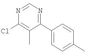 Получали из 4-хлорфенилбороновой кислоты и 4,6-дихлор-5-метилпиримидина, используя методику, описанную для Промежуточного соединения 62. LC/MS: m/z 239,1 [M+H]+, Rt 3,2 мин. Промежуточное соединение 64: 4-хлор-5-метил-6-(4-метилфенил)-пиримидин