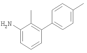 К раствору 3-бром-2-метиланилина (15 г; 0,0806 моль) в 1,2-диметоксиэтане (330 мл) и воде (165 мл) добавляли 4-метилфенилбороновую кислоту (12,05 г; 0,0886 моль) и карбонат натрия (22,2 г; 0,2095 моль). Аппарат заполняли азотом перед добавлением тетракис(трифенилфосфин)палладия(0) (1,86 г; 1,61 ммоль). Полученную смесь нагревали при 90°С и перемешивали в атмосфере азота в течение 22 ч, затем оставляли охлаждаться до комнатной температуры и растворители удаляли под вакуумом. Остаток распределяли между EtOAc (2×400 мл) и водой (400 мл). Органический раствор сушили (Na2SO4) и растворитель удаляли под вакуумом. В результате очистки Biotage LC/MS: m/z 198 [М+Н]+, Rt 3,22 мин. Промежуточное соединение 71: N-(2,4