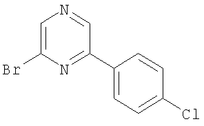 К смеси 2,6-дихлорпиразина (3 г; 20 ммоль), карбоната натрия (5,5 г; 52 ммоль) и 4-хлорфенилбороновой кислоты (3,79 г; 3,36 ммоль) в диметоксиэтане (140 мл) и воде (70 мл) в атмосфере азота добавляли тетракис(трифенилфосфин)палладий(0) (0,46 г). Полученную смесь нагревали с обратным холодильником в течение 18 ч в атмосфере азота. Реакционную смесь оставляли охлаждаться до комнатной температуры, разбавляли водой (150 мл) и экстрагировали дихлорметаном (2×200 мл). Органический раствор пропускали через гидрофобную фритту и растворители удаляли под вакуумом. В результате очистки посредством Biotage LC/MS: m/z 225,0 [M+H]+, Rt 3,45 мин. Промежуточное соединение 76: 2-бром-6-(4-хлорфенил)пиразин