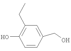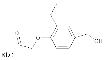 К раствору 3-этил-4-гидроксибензальдегида (4,7 г; 26 ммоль) в безводном THF (150 мл) при 0°С в атмосфере N2 добавляли по каплям 1 М LiAlH4 в Et2O (52 мл; 52,2 ммоль). Полученную смесь перемешивали при 0°С в течение 2 ч, затем гасили осторожным добавлением воды и перемешивали в течение 15 минут. Реакционную смесь затем абсорбировали на диоксиде кремния и наносили на набивку диоксида кремния, которую промывали EtOAc. EtOAc промывки собирали и концентрировали под вакуумом с получением указанного в заголовке соединения в виде бесцветного масла (3,67 г). LC/MS: m/z 151,1 [М-Н]–, Rt 2,1 мин. Промежуточное соединение 85: этил-[2-этил-4-(гидроксиметил)-фенокси]ацетат