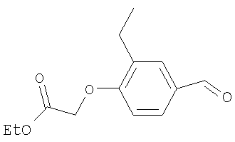 К раствору 2-этил-4-(гидроксиметил)фенола (3,67 г; 24,1 ммоль) в безводном ацетонитриле (125 мл) добавляли карбонат цезия (8,65 г; 26,6 ммоль), реакционную смесь затем продували азотом и охлаждали до 0°С, затем добавляли этилбромацетат (2,68 мл; 24,1 ммоль). Реакционную смесь оставляли постепенно достигать комнатной температуры и перемешивали в течение 18 ч. Добавляли дополнительно этилбромацетат (0,26 мл; 2,4 ммоль) и перемешивание продолжали в течение 4 ч. Реакционную смесь разбавляли водой (100 мл) и затем экстрагировали EtOAc (2×100 мл). Объединенные органические экстракты сушили (MgSO4), фильтровали и упаривали. В результате очистки Biotage 1H ЯМР (400 МГц; CDCl3) Промежуточное соединение 86: этил-(2-этил-4-формилфенокси)-ацетат
