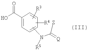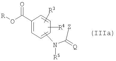 в которой Q, R3, R4, R5 и Z имеют вышеуказанные значения и R представляет собой алкил, в частности метил или этил, подвергают взаимодействию с водой, при необходимости, в присутствии гидролизующего вспомогательного агента, например такого, как натриевая щелочь, и при необходимости, в присутствии разбавителя, например такого, как тетрагидрофуран, при температурах между 0°С и 100°С (смотри примеры получения). Эфиры бензойной кислоты общей формулы (IIIa), необходимые как исходные продукты, известны и/или могут быть получены по известным методам (смотри японскую заявку на патент JP-A-11292849, примеры получения). Эфиры бензойной кислоты общей формулы (IIIa) получают, если (