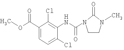 Исходные вещества формулы (IIIa): Пример (IIIa-1) Смесь 12,3 г (50 ммоль) метилового эфира 2,4-дихлор-3-изоцианатобензойной кислоты, 5,0 г (50 ммоль) 1-метил-2-оксо-имидазолидина, нескольких капель триэтиламина и 100 мл ацетонитрила перемешивают 18 часов при комнатной температуре (примерно 20°С) и затем упаривают под пониженным давлением. После этого остаток растирают с диэтиловым эфиром, и кристаллический продукт выделяют с помощью отсасывания. Получают 11,4 г (60% от теории) метилового эфира 2,4-дихлор-3-[[(3-метил-2-оксо-1-имидазолидинил)-карбонил]амино]-бензойной кислоты. logP(рН 2,3):1,94. Аналогично примеру (IIIa-1) могут быть получены также, например, соединения общей формулы (IIIa), приведенные в таблице 3.