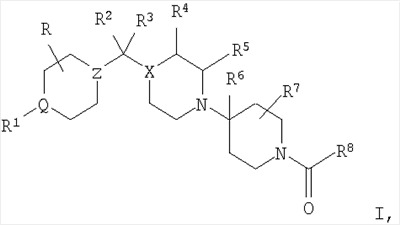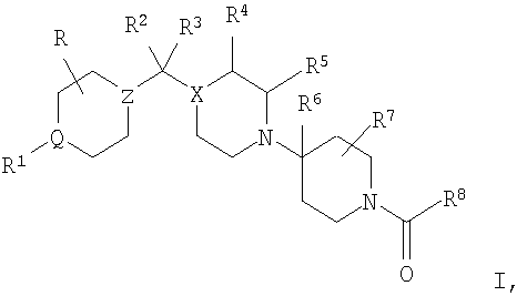 3. Производные пиперидина по п.1, где R1 означает R9-арил(С1-С6)алкил-, (С1-С6)алкил-SO2-, (С3-С6)циклоалкил-SO2-, фтор(С1-С6)алкил-SO2-, R9-арил-SO2– или R9-арил-NH-C(O)-.