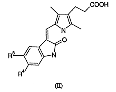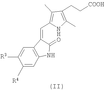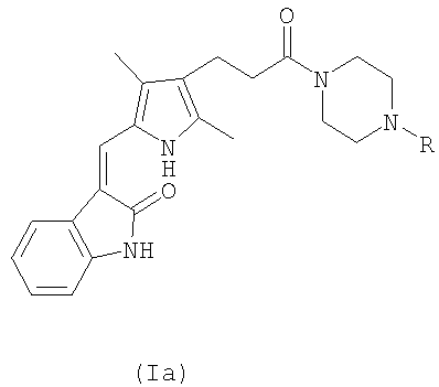 в которой R представляет водород, метил или этил; или их фармацевтически приемлемые соли. 7. Соединение по п.6, выбранное из: 3-[3,5-диметил-4-(3-оксо-3-пиперазин-1-илпропил)-1Н-пиррол-2-илметилен]-1,3-дигидроиндол-2-она; 3-[3,5-диметил-4-[3-оксо-3-(4-этил)пиперазин-1-илпропил]-1Н-пиррол-2-илметилен]-1,3-дигидроиндол-2-она и их фармацевтически приемлемых солей. 8. Соединение по п.7, которое является 3-[3,5-диметил-4-(3-оксо-3-пиперазин-1-илпропил)-1Н-пиррол-2-илметилен]-1,3-дигидроиндол-2-оном или его фармацевтически приемлемой солью. 9. Способ получения соединения по любому из пп.1-8, включающий взаимодействие соединения формулы (II)