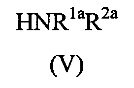 или его солью, где значения R1, R2, R3, и R4 определены выше, или (b) для соединения формулы (I), в которой R5 или R7 представляют атом водорода, снятие защиты в соединении формулы (IV) в которой R1a и R2a имеют значения, определенные выше для R1 и R2, кроме тех, в которых R5 или R7 заменены группами R5a или R7a соответственно, где R5a или R7a, каждый представляет аминозащитную группу, и значения R3 и R4 определены выше; с последующим, если необходима фармацевтически приемлемая соль, получением фармацевтически приемлемой соли. В способе (а) взаимодействие соединения формулы (II) с соединением формулы (III) можно удобно проводить, используя стандартный метод образования амида. Например, кислоту формулы (II) можно обработать таким конденсирующим агентом, как гексафторфосфат бензотриазол-1-илокситриспирролидинфосфония (РуВОР) или гексафторфосфат О-(7-азабензотриазол-1-ил)-N,N,N’,N’-тетраметилурония (HATU), в присутствии основания, такого как N,N-диизопропилэтиламин и 1-гидрокси-7-азабензотриазол (HOAt), с последующим добавлением соединения формулы (III). Подходящие растворители включают апротонные органические растворители, такие как диметилформамид. Температура проведения реакции находится в пределах от 0 до 50°С. Альтернативно соединение формулы (II) может быть преобразовано в галогенангидрид кислоты, например хлорангидрид, и затем подвергнуто взаимодействию с соединением формулы (III). В способе (b) аминозащитная группа, представленная R5a или R7a, может быть общепринятой аминозащитной группой. Примеры аминозащитных групп приведены в Greene and Wuts, Protecting Groups in Organic Syntesis, 2nd Edition, John Wiley & Sons, NY, 1991 и McOmie, Protecting Groups in Organic Chemistry, Plenum Press, NY, 1973. Примеры аминозащитных групп включают ацильные группы, например (1-6С)алканоильные группы, такие как ацетил; (1-6С)алкоксикарбонильные группы, такие как трет-бутоксикарбонил; арилметоксикарбонильные группы, такие как бензилоксикарбонил; и арилметильные группы, такие как бензил. Ацильная аминозащитная группа может быть легко удалена действием кислоты, такой как трифторуксусная кислота. Соединения формулы (IV) могут быть получены взаимодействием соединения формулы (II) с амином формулы (V)