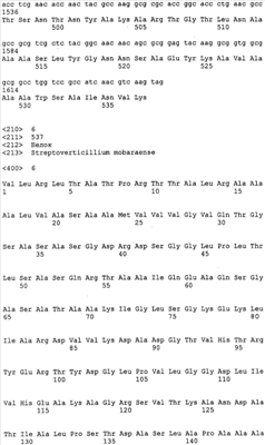 7. Молекула нуклеиновой кислоты, кодирующая нейтральную металлопротеазу из Streptoverticillium по п.5, где указанная металлопротеаза имеет последовательность из аминокислот 217-537, показанную в SEQ ID NO:6.