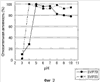 Фиг.8 (A) и (B) представляют собой графики, на которых отображено изменение количества белка MTG во времени при взаимодействии про-MTG с SVP70 и SAM-P45, соответственно. (A): добавление SVP70, : добавленное количество 1/200 относительно субстрата, : добавленное количество 1/500 относительно субстрата; (B): добавление SAM-P45, : добавленное количество 1/10 относительно субстрата, : добавленное количество 1/50 относительно субстрата.