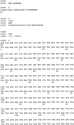 То есть настоящее изобретение относится к нейтральной металлопротеазе из актиномицетов, имеющей высокую избирательность при отщеплении проструктурной части про-MTG, и к кодирующей ее молекуле нуклеиновой кислоты.