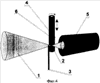 На фиг.2 изображена схема движения струи испаряемого материала.