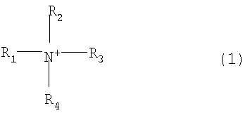 (в которой R1, R2, R3 и R4 соответственно и независимо означают алкильную группу имеющую от 1 до 30 атомов углерода или гидроксиполиоксиэтиленовую группу, представленную как – (СН2СН2O)nH). Среди алкильных групп, имеющих от 1 до 30 атомов углерода, представленных как R1, R2, R3 и R4, здесь являются предпочтительными алкильные группы, имеющие от 1 до 18 атомов углерода. Предпочтительные примеры соединений четвертичного аммония включают (но не ограничиваются ими) додецилтриметиламмонийхлорид, тетрадецилтриметиламмонийхлорид, гексадецилтриметиламмонийхлорид, октадецилтриметиламмонийхлорид, олеилтриметиламмонийхлорид, дидодецилдиметиламмонийхлорид, дитетрадецилдиметиламмонийхлорид, дигексадецилдиметиламмонийхлорид, диоктадецилдиметиламмонийхлорид, диолеилдиметиламмонийхлорид, додецилдиэтилбензиламмонийхлорид, тетрадецилдиметилбензиламмонийхлорид, гексадецилдиметилбензиламмонийхлорид, октадецилдиметилбензиламмонийхлорид, олеилдиметилбензиламмонийхлорид, триоктилметиламмонийхлорид, гидроксиполиоксипропиленметилдиэтиламмонийхлорид, гидроксиполиоксиэтилен-додецилдиметиламмонийхлорид, гидроксиполиоксиэтилентетрадецилдиметиламмонийхлорид, гидроксиполиоксиэтиленгексадецилдиметиламмонийхлорид, гидроксиполиоксиэтиленоктадецилдиметиламмонийхлорид, гидроксиполиоксиэтиленолеилдиметиламмонийхлорид, дигидроксиполиоксиэтилендодецилметиламмонийхлорид, бис(гидроксиполиоксиэтилен)тетрадецилметиламмонийхлорид, бис(гидроксиполиоксиэтилен)гексадецилметиламмонийхлорид, бис(гидроксиполиоксиэтилен)октадецилметиламмонийхлорид и бис(гидроксиполиоксиэтилен)олеилметиламмонийхлорид.
