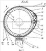 В момент прибоя ползун 15 посредством фрикционной прокладки 16 кратковременно прижимает оболочку 3 к фрикционной прокладке 18, жестко установленной в выемке скала 1, что вызывает останов окружного движения оболочки 3.