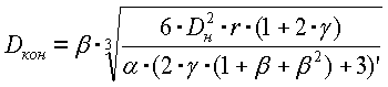 При этом эмпирические коэффициенты, определяющие соотношения базовых размеров компрессионной камеры, имеют следующие значения: