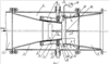 Управление углом раскрытия полусопел и полудиффузоров может быть осуществлено с помощью винтовой передачи с рычагами (фиг.4). При вращении штурвала 15 по часовой стрелке обеспечивается равномерное раскрытие полусопел 4, 10 и полудиффузоров 23, 30, а при вращении штурвала против часовой стрелки обеспечивается сужение проходного сечения сопла и диффузора. На фиг.4 пунктиром показано положение одного из рычагов 13 в крайних положениях.