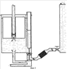 Золотник 15 опускается, перекрывая выпускной канал 13 и открывая впускной канал 10. Заполнение гильзы водой приводит к образованию силы Архимеда, действующей на поршень 1. Поршень 1 приводится в движение к ВМТ. В рабочей камере 3 создается избыточное давление, всасывающий клапан 14 закрывается, а напорный клапан 4 открыт.Осуществляется рабочий ход – нагнетание воды в напорный трубопровод 6, и процессы чередуются. Переключение на рабочий ход можно описать формулой