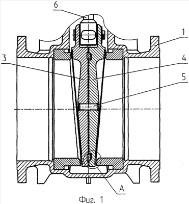 На фиг.1 изображен продольный разрез затворного узла клиновой задвижки; на фиг.2 – вид А фиг.1.