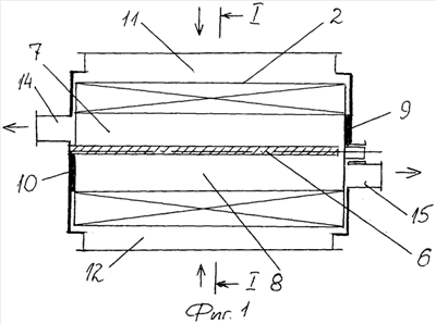 На Фиг.1 представлен общий вид регенеративного воздухоподогревателя; на Фиг.2 – сечение I-I на Фиг.1.