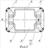 Углы корпуса 1 и крышки 2 срезаны под углом 45° (фиг.2), образуя вертикальные скосы 3 (фиг.1 и 3), на которых смонтированы четыре рычажно-кулачковых запора 4, соответственно рычаги 5 и кулачки 6, взаимодействующие при сборке и жестко связанные в укупорке.