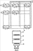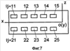 На фиг.4 изображена функциональная электрическая схема МД НМС 1053 [7], а на фиг.5 – эквивалентная его схема. Каждый МД представляет собой 4-элементный мост сопротивления из резисторов R для преобразования магнитных полей в дифференциальные выходные напряжения вдоль осей OX, OY, OZ: Ux ij, Uy ij, Uz ij, где нижние индексы i и j обозначают номер ряда МД вдоль осей OZ и ОХ соответственно. Rc и Rн – магниторезистивные перемычки смещения и набора повторной установки – металлизированные спирали управления, они служат для всех трех мостов.