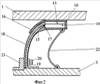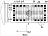 Ласт 15 через посредство накладки 19 и винтов 20 крепится к уголку 21, в свою очередь установленному на герметичном контейнере 3 ВСД 2. Стяжка 22 является ограничителем раскрытия ласт 15 при извлечении ВСД 2 из трубы. На фиг.3 изображен вид АА на ласт 15, на котором представлено размещенние матрицы 13 магниточувствительных датчиков 23, на котором номером i (i=1,…,m) обозначена линейка магниточувствительных датчиков 24 вдоль оси OZ, связанной с ВСД 2, а номером j (j=1,…,n) – линейка магниточувствительных датчиков 23 вдоль оси ОХ, связанной с ВСД 2. В качестве матрицы 13 магниточувствительных датчиков 23 могут выступать либо готовые магниторезистивные матрицы, либо наборы одно-, двух- или трехкомпонентных чипов – магниторезистивных датчиков 23 (МД) [7] или датчиков Холла. Большую точность обеспечивают трехкомпонентные МД, например, НМС 1053 Honeywell [7] размеров 0,29·0,29·0,11 см, диапазон измерения ±6 Гс, питание =5 В, разрешение 120 мГс.