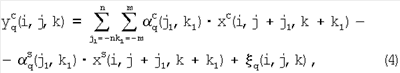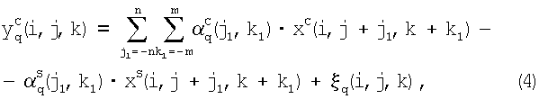которая используется для восстановления искомого поля X={x(i,j,k)} на множестве интегральных (суммарных) измерений Yq={yq(i,j,k)}, , зашумленных помехами q и q. Так как корреляцией сигналов в соседних i-x стробах дальности можно пренебречь, то обработка измерений ведется независимо в i-x элементах разрешения дальности.