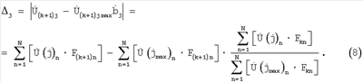 В смежном (k+1)-м стробе дальности при помощи вычисленных коэффициентов (7) найдем разности между комплексными амплитудами сигналов в соответствии с выражением (2)