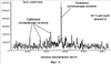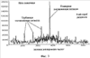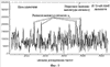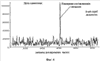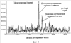 На фиг.3 представлены сигналы доплеровских частот одиночной цели в k-м стробе дальности. На фиг.4 показаны сигналы доплеровских частот той же одиночной цели в (k+1)-м стробе дальности. На фиг.5 показаны разности амплитуд сигналов А, вычисленные по формуле (2) в (k+1)-м стробе дальности. Представленные разности амплитуд сигналов j были вычислены для сигналов доплеровских частот одиночной цели, представленных на фиг.3, 4. Коэффициенты ослабления комплексной амплитуды сигнала по частотам определялись, согласно соотношению (1), по сигналам доплеровских частот одиночной цели в k-м стробе дальности. Из фиг.5 видно, что разности амплитуд сигналов j ниже порогового значения амплитуды .