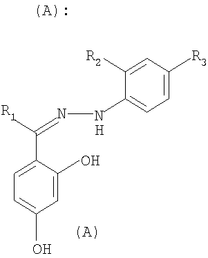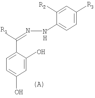 Подразумевается, что 4-{1-[(2,4-ди(замещенный)фенил)гидразоно]алкил}бензол-1,3-диол по изобретению является соединением формулы (А):