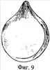 В зазор на входе Zвх в рабочую щель между барабаном 1 и декой 5 подают семенной материал, который перемещается под действием вращения барабана 1 по рабочей щели к зазору на выходе Zвых. В процессе перемещения в рабочей щели семенной материал, состоящий из плодов эспарцета и чернокорня, подвергается воздействию рабочих поверхностей 2 и 6. Плоды эспарцета (Фиг.2 и Фиг.3) своими периферийными частями, попадая во впадины 4 и 8 поверхностей 2 и 6 от воздействия выступов 3 и 7, подвергаются деформациям изгиба и действию сил трения. В результате створки плодов раскрываются и семена выделяются из плодов (Фиг.4 и Фиг 5). Под воздействием рабочих поверхностей 2 и 6 оболочки части плодов чернокорня (Фиг.6 и 7) разрушаются, выделяя семена, которые в свою очередь разделяются на семядоли (Фиг.8 и 9). Ворох, получаемый после прохода семенного материала через устройства для выделения семян, включающий семена эспарцета и чернокорня, створки плодов и возможно какое-то количество целых плодов, подается в восходящий пневмопоток, максимальная скорость которого не превышает 3,5 м/с. В легкую фракцию пневмопотоком выносятся легкие примеси, основную массу которых составляют створки плодов. Оставшийся ворох подают на плоское решето с круглыми отверстиями диаметром 4 мм. В проход собирают семена эспарцет, а в сход – семена чернокорня и, если в ворохе присутствовали плоды эспарцета и чернокорня, то и их. Плоды эспарцета и чернокорня отделяют от семян чернокорня в пневмопотоке или на решетах. После этого их подают на повторную обработку в устройство для выделения семян эспарцета из плодов.
