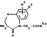 (57) Реферат: Описываются новые производные бензазепин-, бензоксазепин-, бензотиазепин- N-уксусной кислоты общей формулы I, где R1 обозначает (низший) алкокси (низшую) алкильную группу, низший алкоксильный остаток, который замещен низшей алкоксильной группой, фенил(низшую)алкильную группу или фенилокси(низшую)алкильную группу, которая в случае необходимости в фенильном кольце может быть замещена низшим алкилом, низшим алкоксилом или галогеном, или нафтил(низшую)алкильную группу, A обозначает CH2, O или S; R2 обозначает водород или галоген, R3 обозначает водород или галоген, R4 обозначает водород или образующую биолабильный сложный эфир группу, и R5 обозначает водород или образующую биолабильный сложный эфир группу, и физиологически переносимые соли кислот формулы I. Они обладают ценными, эффективными в отношении воздействия на сердце, фармакологическими свойствами и проявляют отчетливо выраженное подавляющее воздействие на нейтральную эндопептидазу с благоприятным профилем действия, на основании которого они уменьшают наступающее при сердечной недостаточности высокое сердечное давление наполнения и таким образом разгружают сердце и могут вызывать усиление лиуреза. Описываются также способ получения соединений формулы I и лекарственное средство, их содержащее. 3 с. и 5 з.п. ф-лы, 5 табл.