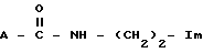 ![]() в которой A представлен a) либо в форме ![]() где B представляет собой амин, в котором атом азота напрямую связан с атомом углерода и который является первичным NH2 или вторичным амином формулы NH – X, где X = CH3, CH3 – CO-, Ph – CO или трет.бутил -O – C = O-; R представляет собой метил, линейный алкил, который может быть замещен амино- или карбоксильной группой; R’ представляет собой атом водорода или метил, b) либо в форме ![]() где R представляет собой атом водорода; R” представляет собой углеводородный радикал, который может быть замещен гидроксильной или карбонильной группой, а Im представляет собой имидазольную группу. 2. Псевдодипептиды общей формулы I по п.1, выбранные из группы, представленной: L-глутамилгистамином, L-орнитилгистамином, L-2,6-диаминопимелилгистамином, 2-аминоизобутирилгистамином, L-норлейцилгистамином, Boc-2-амино-L-пентилгистамином, L-пролилгистамином, N-ацетил-2-аминобутирилгистамином, N-фенацетил-2-аминобутирилгистамином, 4-гидрокси-L-пролилгистамином, L-пироглутамилгистамином. 3. Псевдодипептиды по п.1 или 2, обладающие противокатарактной активностью. 4. Псевдодипептиды по п.1 или 2, обладающие противоатеросклеротической активностью. 5. Псевдодипептиды по п.1 или 2, обладающие противовоспалительной активностью. 6. Псевдодипептиды по п.1 или 2, обладающие способностью ингибировать синтез коллагена. 7. Псевдодипептиды по п.1 или 2, обладающие активностью в отношении улавливания и детоксификации свободного радикала NO. 8. Псевдодипептиды по п.1 или 2, обладающие активностью в отношении улавливания и детоксификации токсичных альдегидов. 9. Способ получения псевдодипептидов общей формулы I по п.1, заключающийся в том, что проводят реакцию между N-защищенной O-активированной , L-аминокислотой и гистамином, при необходимости удаляют защитную группу полученного псевдодипептида и выделяют целевой продукт.