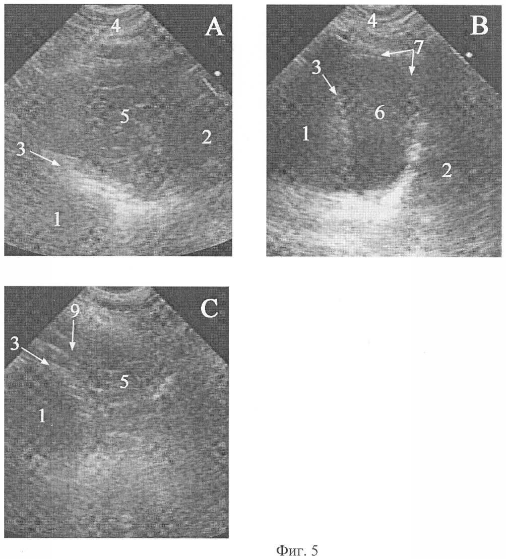 Предлагаемый способ проиллюстрирован эхограммами: фиг.1-5.