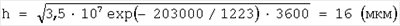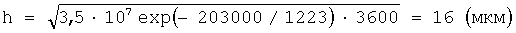 K=1,35·1014 мкм2/с, Е – энергия активации, Дж/моль: для азота Е=203000 Дж/моль; для кислорода Е=244000 Дж/моль; R – газовая постоянная, равная 8,3144 Дж/моль·К; T – температура термообработки, K; Т=1173-1273 К,