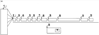 13. Управляюще-регулирующее устройство 13, взаимосвязанное с конструктивными составляющими технологической линии посредством кабелей связи.