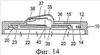 фиг.14 изображает частичный поперечный разрез, аналогичный фиг.3, верхнего участка второго варианта выполнения устройства, показанного в запертом положении, и