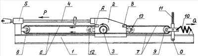 Поставленная цель достигается тем, что рабочая и холостая ветви гибкого элемента выполнены в виде полиспастных систем с одинаковой кратностью.